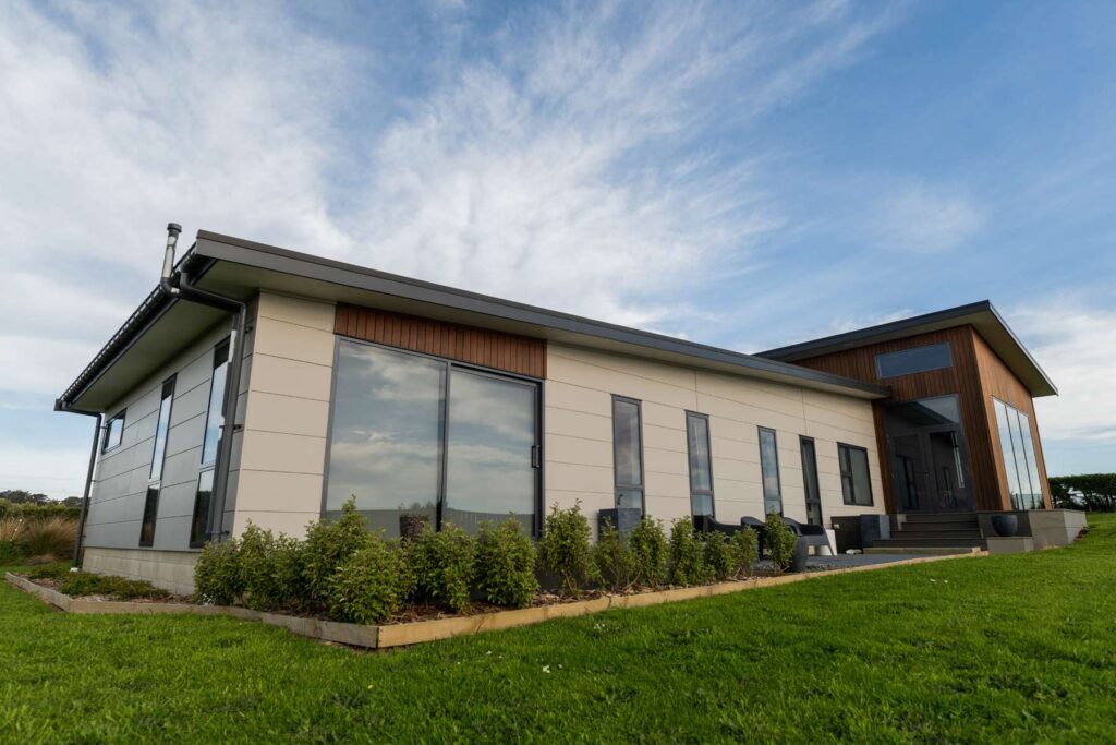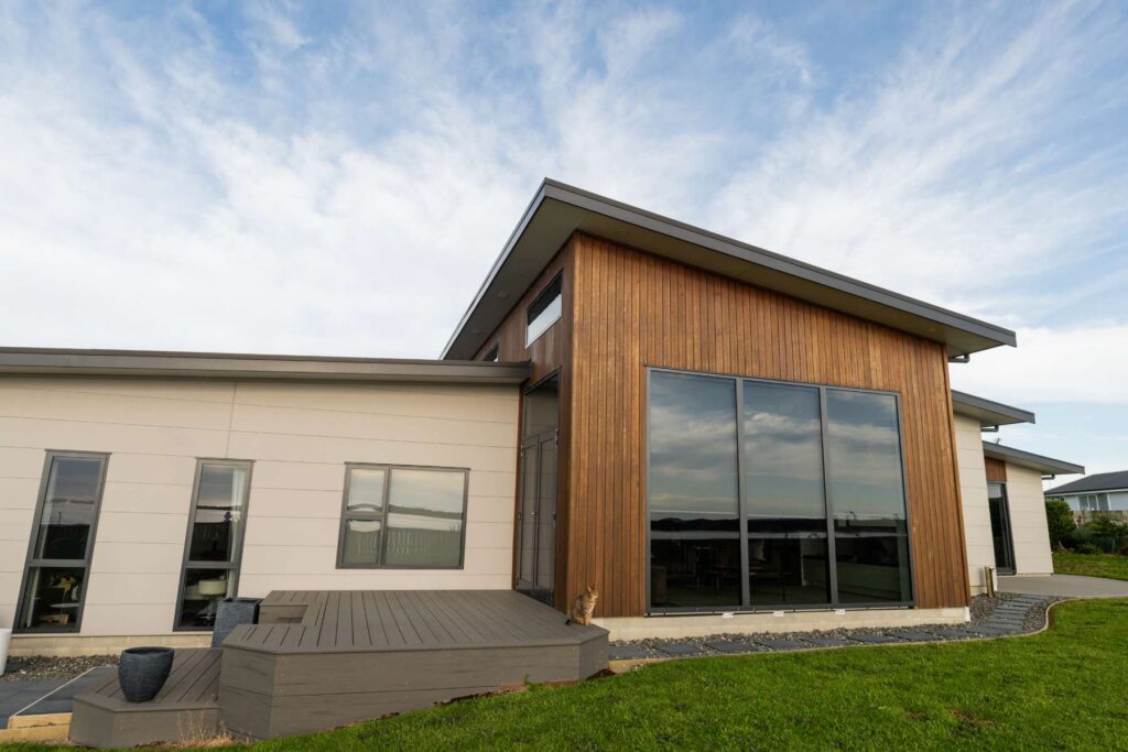 The Fortrose House project was a new home build on a coastal site, contracted through to lock-up stage. Foundations were completed by specialist subcontractors, and the main house shell was supplied as a SIPs (Structural Insulated Panel) system imported from Canada.
